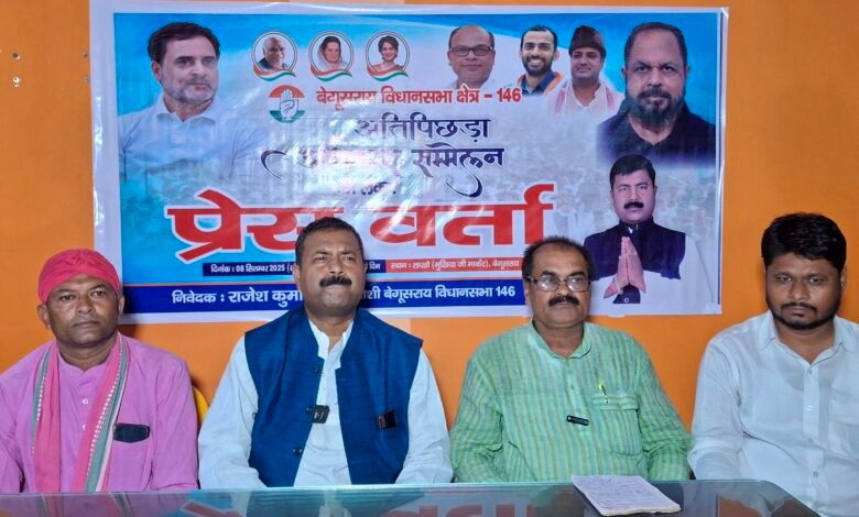 महेश राय ने बताया कि नीतीश कुमार विकास पुरुष हैं उनके रीजन में कुछ काम हुआ है लेकिन जो शोषित दबे कुचले लोग हैं आज भी उनकी स्थिति जमीनी हकीकत पर पता चलेगा कि आज भी गरीब लोग गरीब ही हैं। अतिपिछड़ों के सम्मान अधिकार की लड़ाई की बात कर रहे हैं राहुल गांधी कांग्रेस की नीति विचारधारा से हम सभी साथी इनके नेतृत्व में कांग्रेस का दामन थामेंगे। अतिपिछड़ा अधिकार सह बहुजन मिलन सम्मेलन करने जा रहे हैं जिसमें बड़ी संख्या में बेगूसराय विधानसभा क्षेत्र के हर गांव हर कस्बा टोला से दलित वंचित शोषित पीड़ित अतिपिछड़ा समाज से बड़े संख्या में लोग भाग लेंगे। इस कार्यक्रम के माध्यम से हम राहुल गांधी और शीर्ष नेतृत्व से मांग करेंगे कि जिस तरह से आप अतिपिछड़ों को देने की बात कर रहे हैं उस तरह से हम बेगूसराय के भी अतिपिछड़े दलित समाज के लोग वर्षों से उपेक्षित रहे हैं कभी किसी राजनीतिक दल के नेताओं ने हमें मौका नही दिया। मौके पर राजेश कुमार मुखिया प्रतिनिधि जदयू पूर्व प्रदेश उपाध्यक्ष अतिपिछड़ा प्रकोष्ठ महेश राय शाहपुर मुखिया सह जिला संयोजक मुखिया संघ रामदास धानुक राष्ट्रीय संयोजक धनुषवंशी धानुक एकता मंच क्रांतिकारी जदयू पूर्व प्रवक्ता वीरेंद्र पटेल जदयू पंचायत अध्यक्ष रंजीत सिंह जदयू नेता पवन राय सुमित कुमार प्रधान राजकमल शर्मा सहित अन्य मौजूद थे।